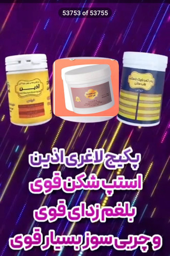 پکیج لاغری آذین شامل پودر کمرباربک و حب بلغم زدا و ژل لاغری چیتی چیتا