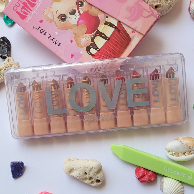 پک رژلب ۱۰تایی مدل لاکچری لاو از برند محشر دراگون Dragon Ranee مدل LOVE