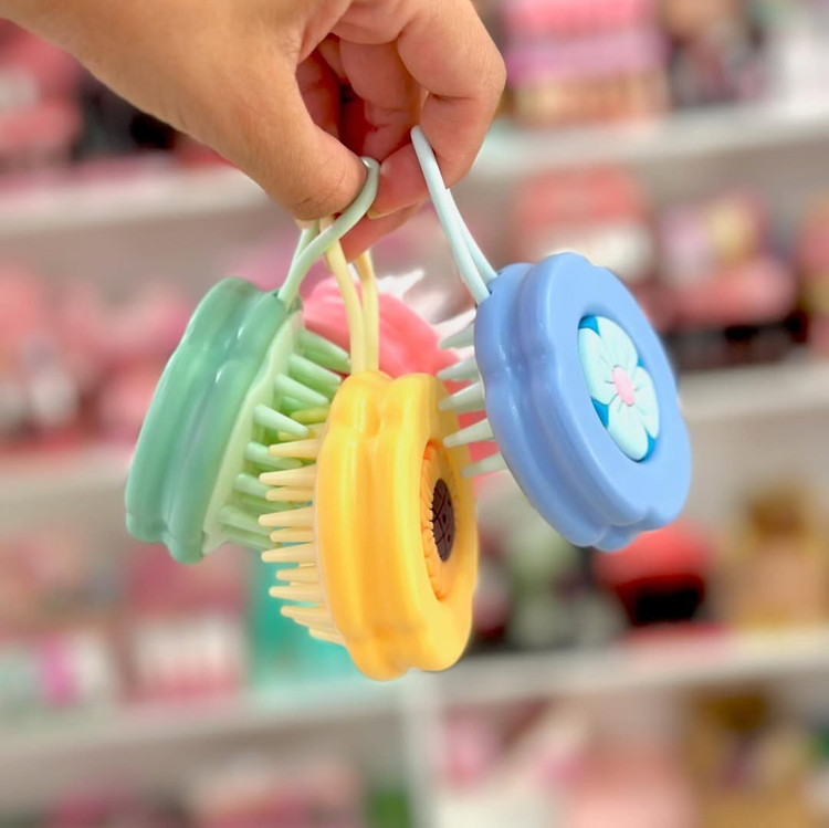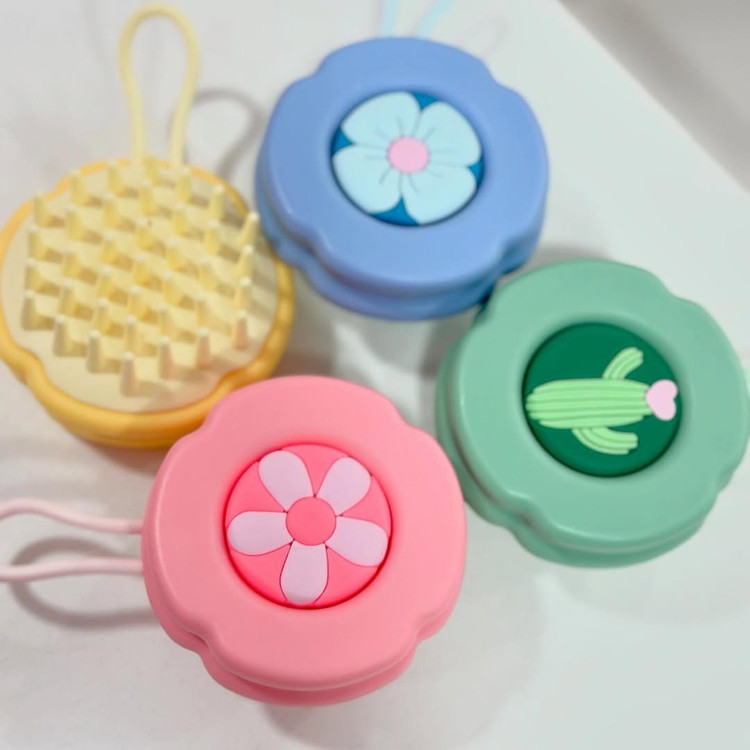 🌸 برس ماساژور و لایه بردار پوست سر طرح فانتزی گل 🌿