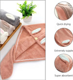 حوله خشک کن مو یکی از محصولات خلاقانه و کاربردی حمام برای خانم ها که معضل خشک کردن موهای بلند را دارند. جنس این حوله خشک کننده مو دکمه دار از میکروفایبر با جذب بالای آب می باشد و به طول 59.5 سانتی متر است که با پیچیدن مو در آن سریع تر و راحت تر موها خشک می گردند🍃