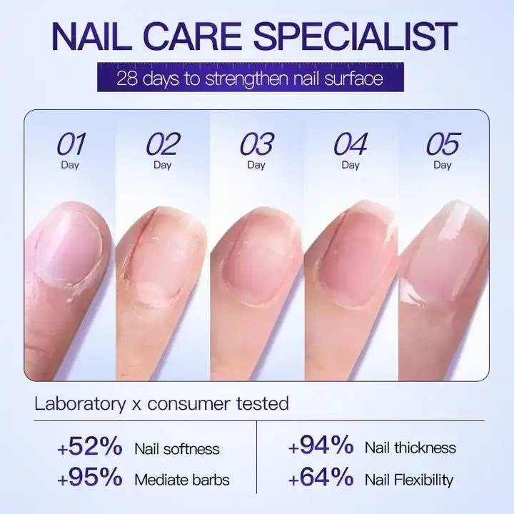 این سرم ناخن های آسیب دیده از لاک ژل ومحصولات دیگر را ترمیم وتقویت میکند و ناخنهای خشک و آسیب دیده را پس از پاک کردن انواع لاک و لاک ژل تقویت وترمیم میکند و موجب افزایش سلامت و زیبایی ناخن میشود.