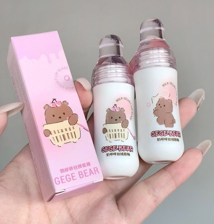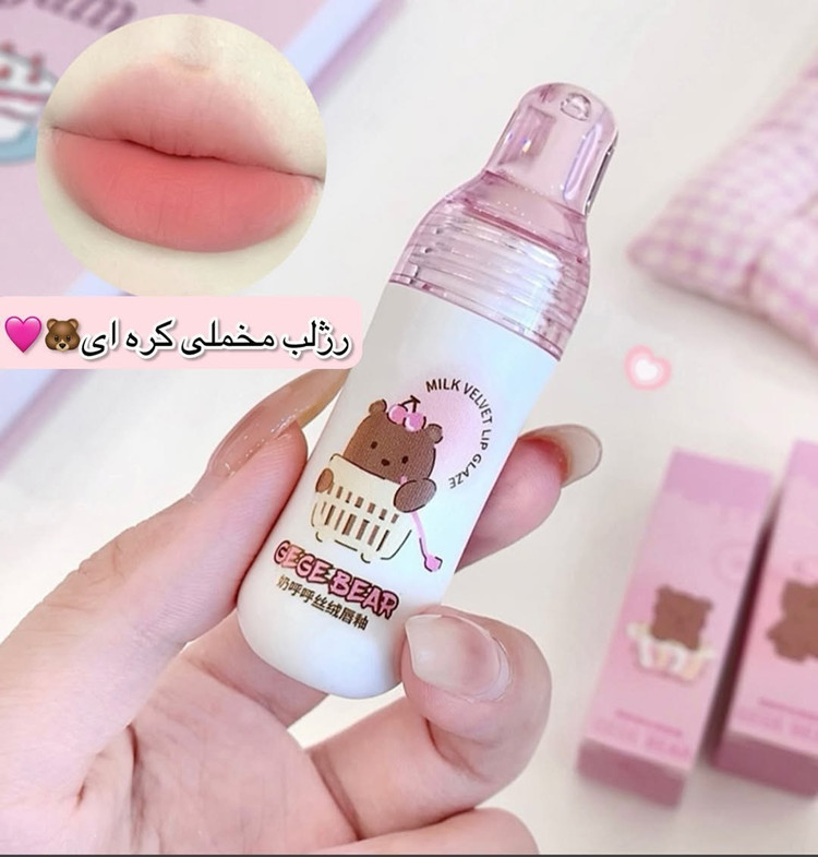 رژلب مخملی و مات کره ای طرح فانتزی خرسی Gege bear