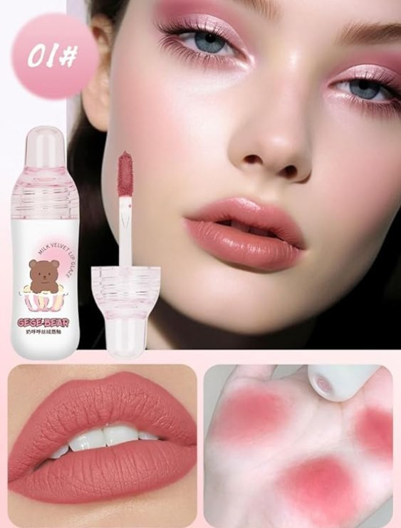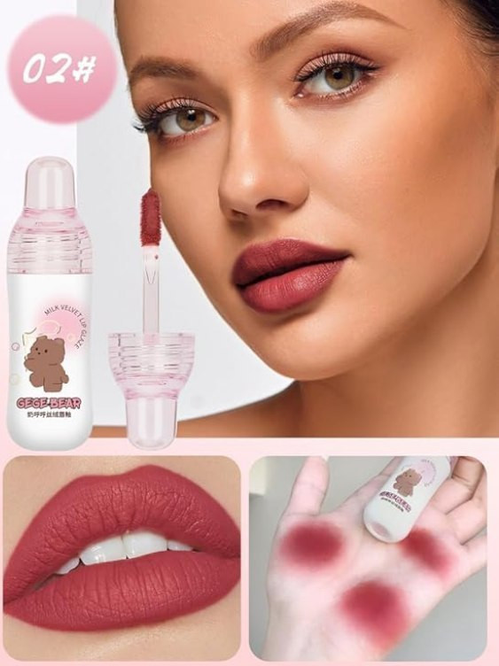 رژلب مات Gege bear بافتی نرم و سبک دارد که ظاهری طبیعی و مخملی به لبها میبخشد.