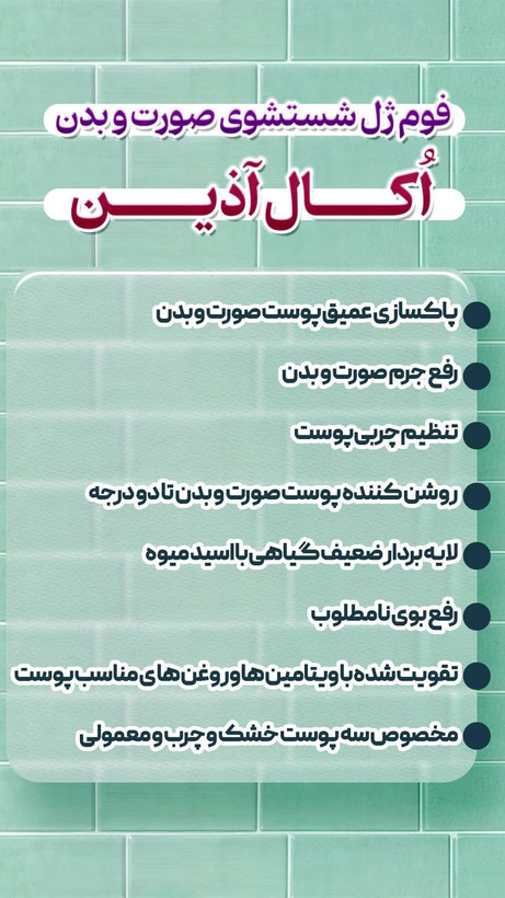 💎فوم ژل شستشوی صورت و بدن اُکال آذین👇