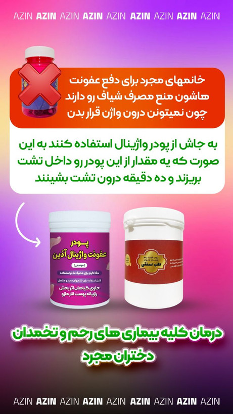 💁🏻♀️فقط یک هفته از پودر تخصصی عفونت واژینال اذین استفاده کنید و اثر شگفت انگیز ان را در پاکسازی رحم ببینید👌🏻