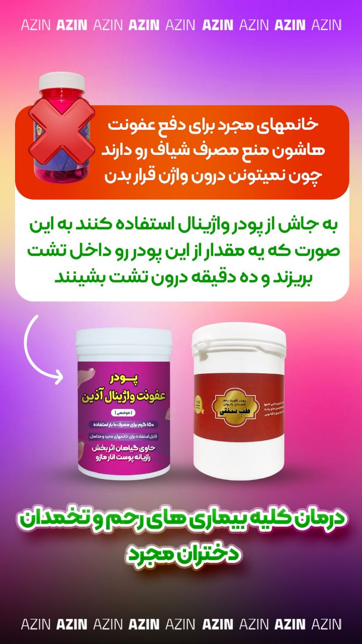 💁🏻♀️فقط یک هفته از پودر تخصصی عفونت واژینال اذین استفاده کنید و اثر شگفت انگیز ان را در پاکسازی رحم ببینید👌🏻
