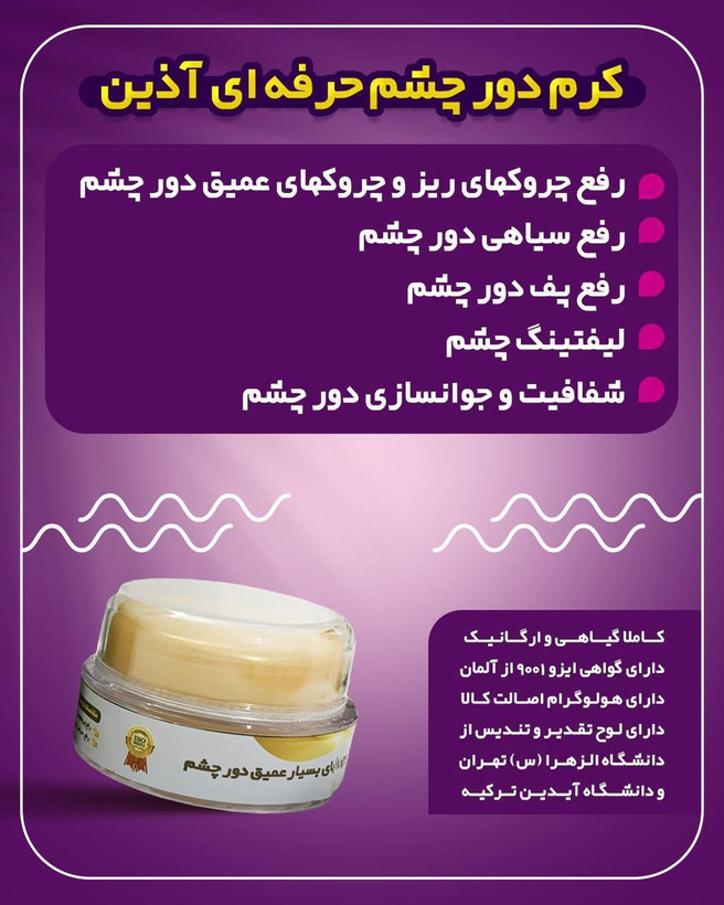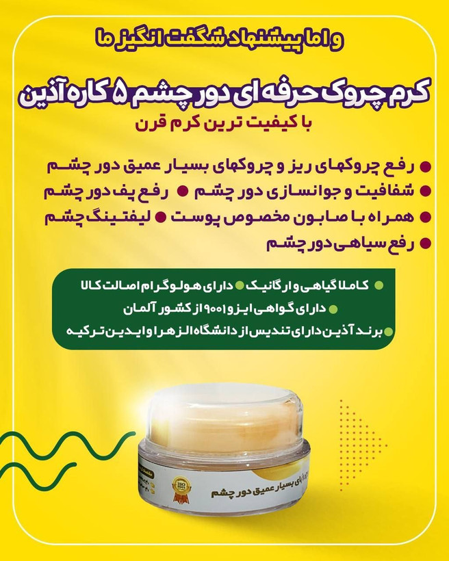 برای رفع چروک ریز دور چشم ، لیفت و رفع سیاهی دور چشم از کرم دور چشم حرفه ای آذین استفاده کنید