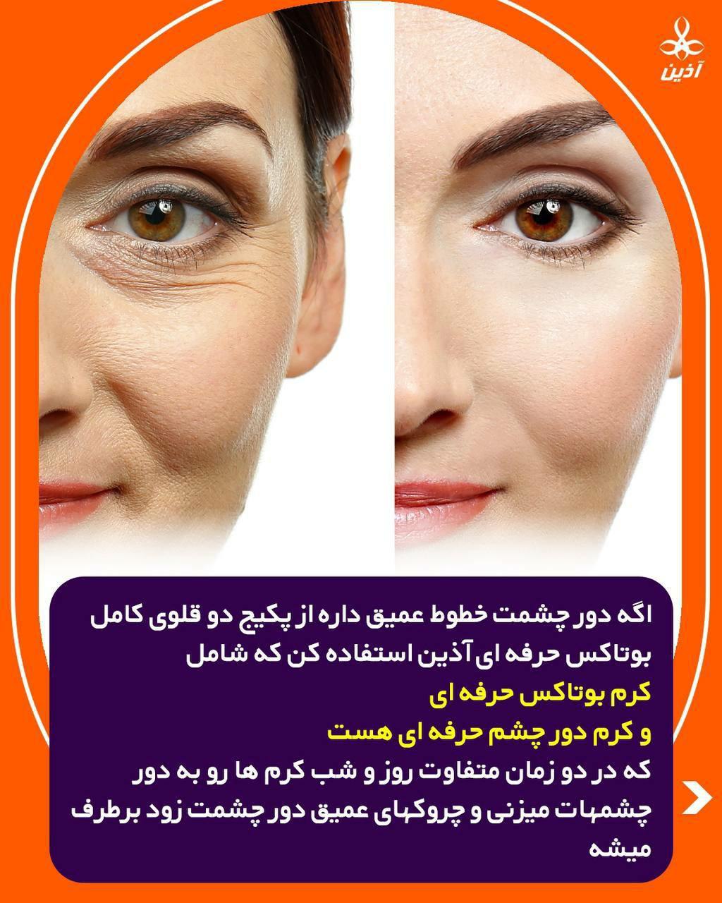 ✅برای خطوط پنجه کلاغی و عمیق دور چشم از کرم بوتاکس حرفه ای و کرم دور چشم حرفه ای استفاده کنید