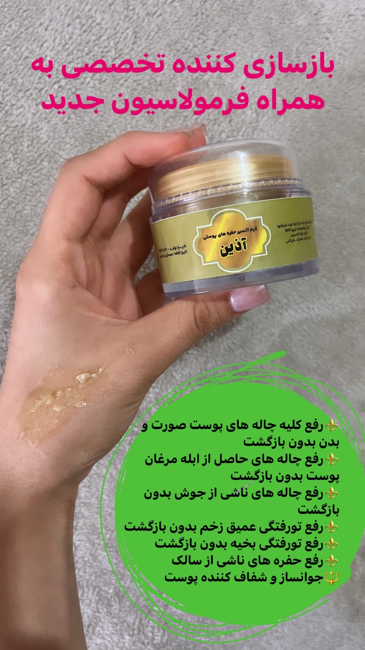 کرم اکسیر قوی و تخصصی چاله ها و حفره های عمیق پوستی آذین سیمرغ خاورمیانه