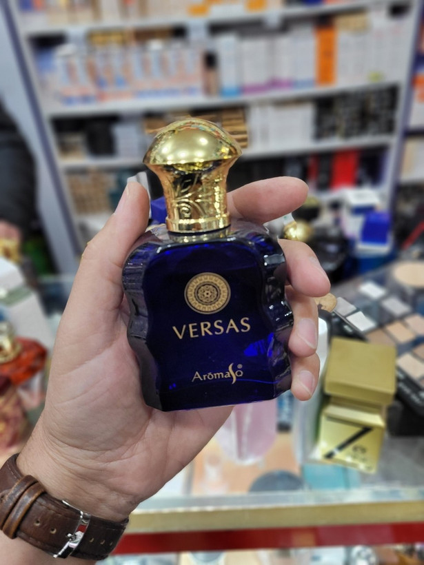 طراحی بطری: بطری اصلی به رنگ آبی تیره با خطوط تمیز و درپوش طلایی و نماد مدوزا (Medusa) است که اساطیر یونانی را تداعی میکند.