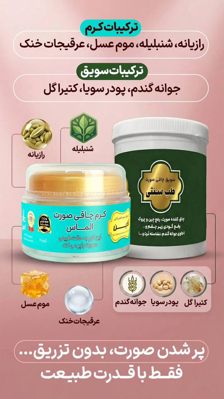 🍃ترکیبات سویق چاقی صورت :جوانه گندم، پودرسویا، کتیراگل و...