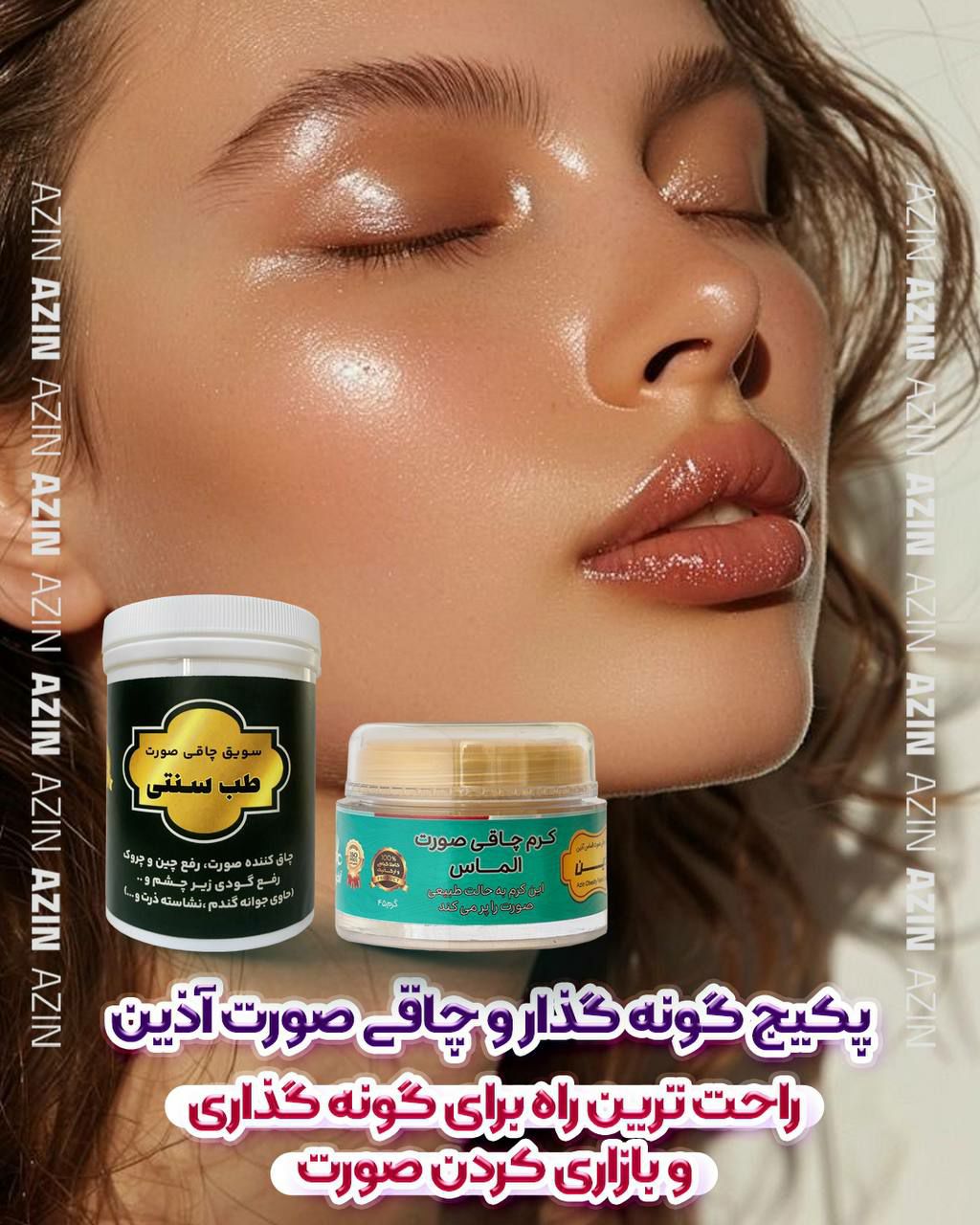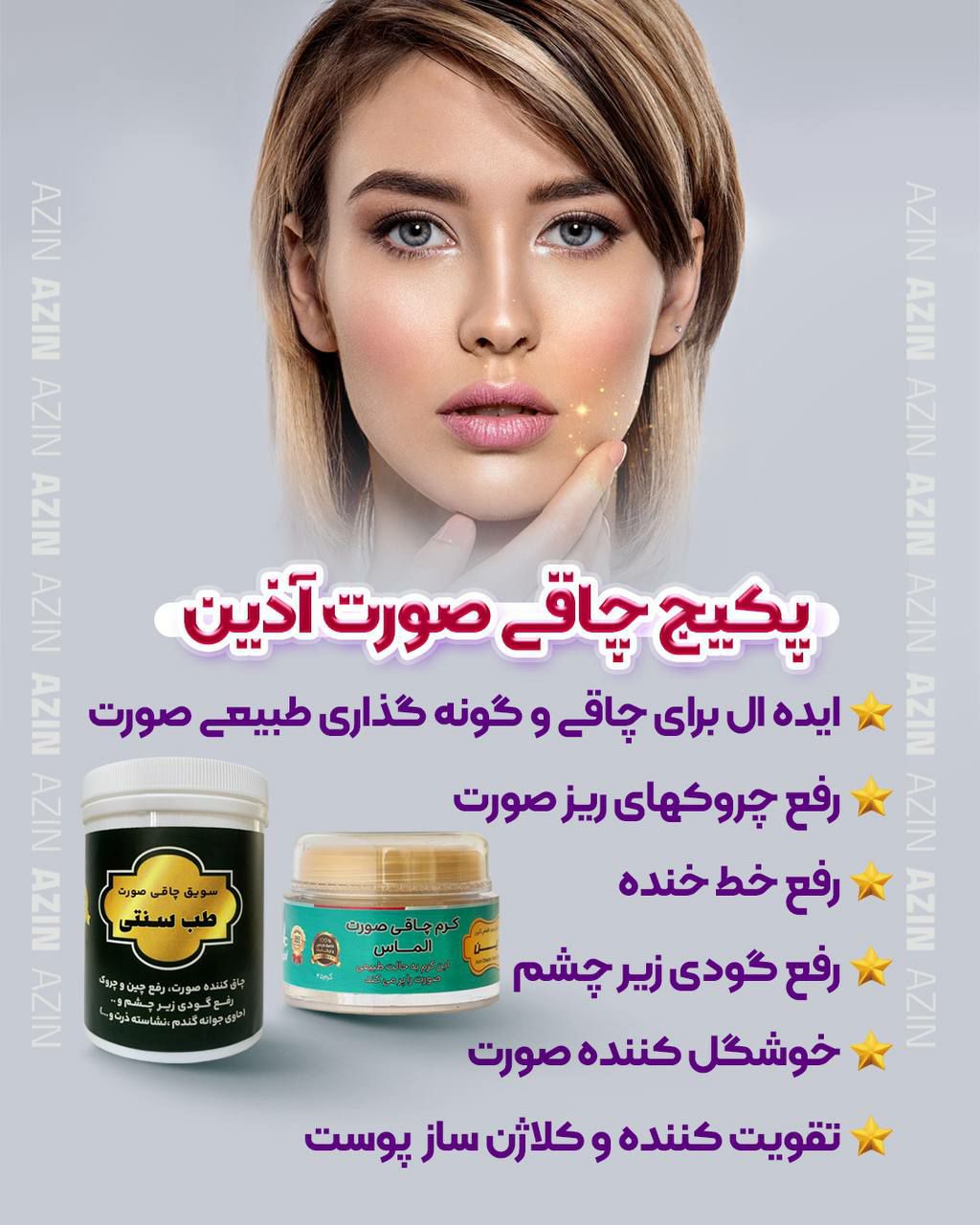 پکیج چاقی صورت شامل کرم حرفه ای الماس و سویق چاقی صورت آذین سیمرغ خاورمیانه