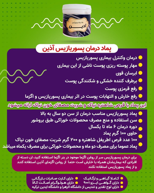 پکیج درمان پسوریازیس شامل(پماد پسوریازیس و حب اگزما، شربت مصفای خون) آذین سیمرغ خاورمیانه