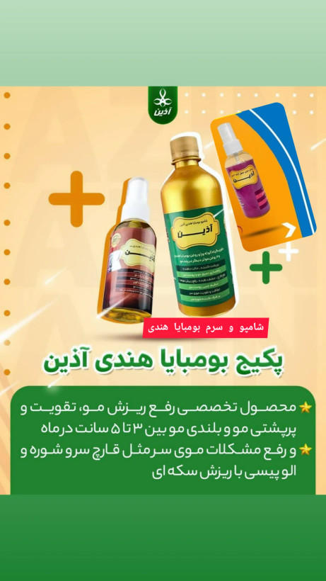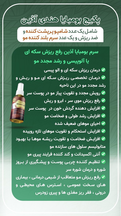 پکیج قوی ضدریزش و پرپشت کننده و بلند کننده مو بومبایای هندی و روغن چهل گیاه آذین سیمرغ خاورمیانه