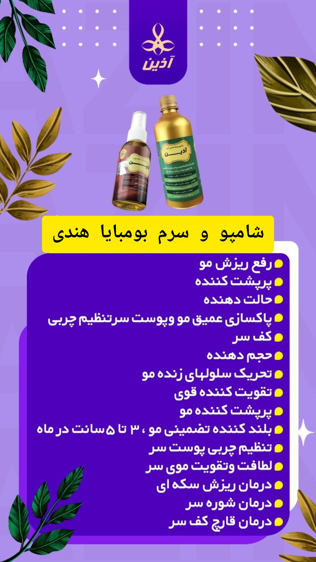 🎖پکیج بومبایا هندی اذین شامل شامپو و سرم بومبایا