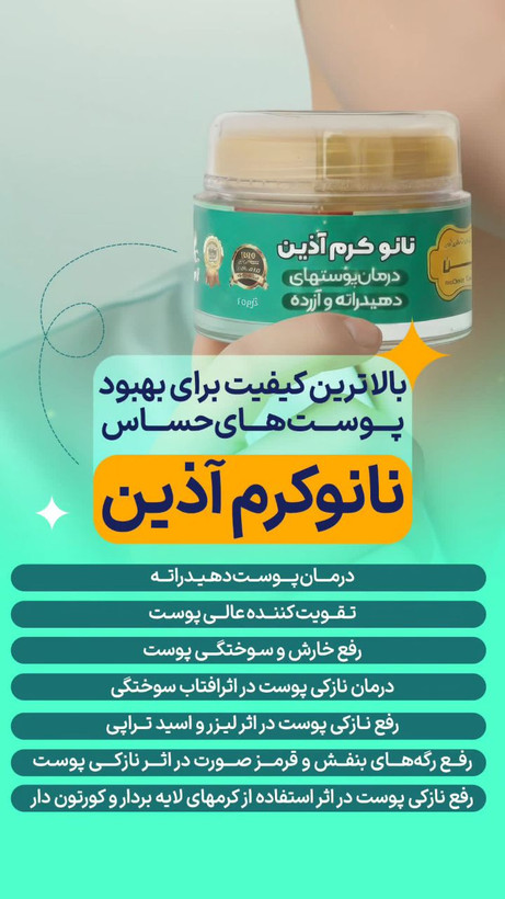 نانو کرم تقویت پوست آذین مناسب پوستهای دهیدراته و آزرده و نازک