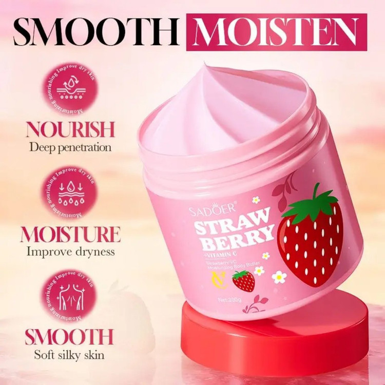 ●کره توتفرنگی با عصاره طبیعی و با رطوبت فراوان پوست را هیدراته کرده و پوست کدر را به پوستی نرم و ابریشمی تبدیل میکند.